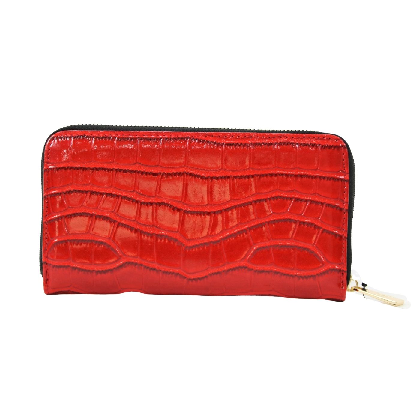 Γυναικείο πορτοφόλι από συνθετικό υλικό σε λουστρίνι με snake μοτίβο και χρυσά αξεσουάρ. Διαθέτει εσωτερική τσέπη για κέρματα που κλείνει με φερμουάρ. Έχει πολλαπλές θήκες για κάρτες, ταυτότητα και χαρτονομίσματα. Κλείνει περιμετρικά με φερμουάρ.