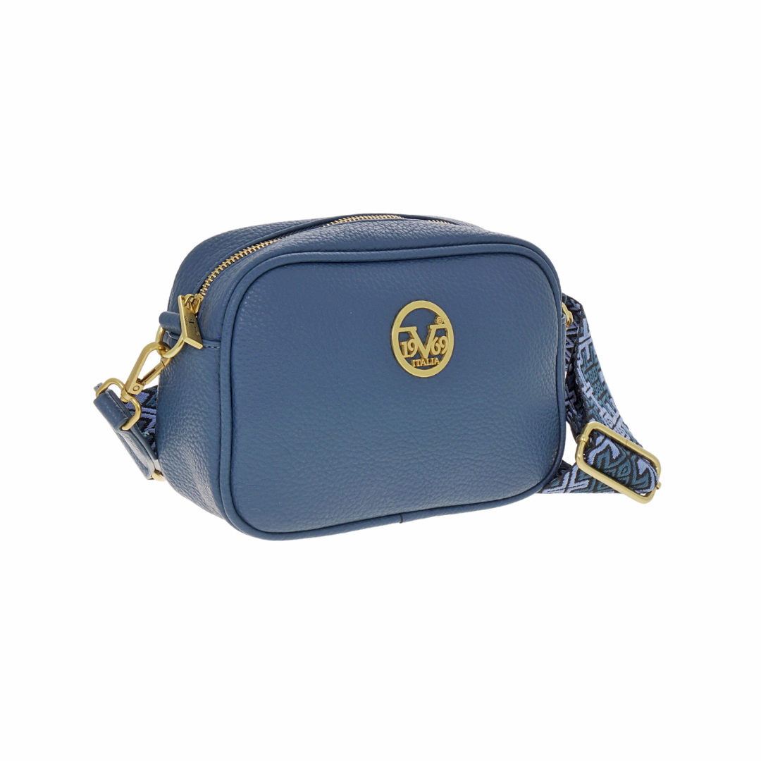 Γυναικείο τσαντάκι χιαστί με χρυσές λεπτομέρειες και λουράκι πλεκτό με χρωματιστό μοτίβο.